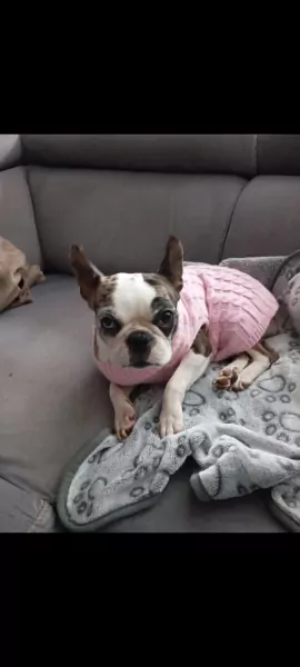 Ze komt oorspronkelijk uit Roemenië, waar ze eerder een nestje heeft gehad en een keizersnede heeft ondergaan (dit is allemaal goed hersteld en ze heeft hier geen last van). Ze is niet geholpen.
