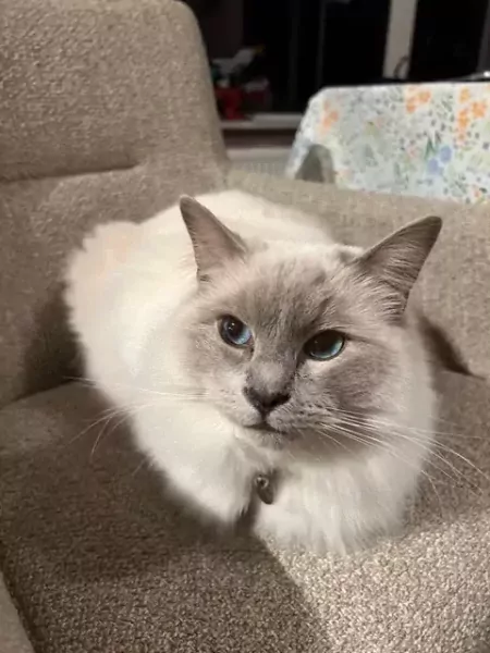 Wegens persoonlijke omstandigheden zijn we op zoek naar een nieuw, liefdevol thuis voor Coco, onze mooie Ragdoll. Hij is een lieve, rustige, aanhankelijke en prachtige witte 1,5 jaar oude Ragdoll kater die van knuffelen houdt. Perfect voor een gezin of iemand die op zoek is naar een gezellige, trouwe huisgenoot. We zoeken een warm thuis waar hij veel aandacht en liefde krijgt. Hij is gesteriliseerd, stamboom en vaccinatieboekje aanwezig. Inclusief XL krabpaal en toebehoren.