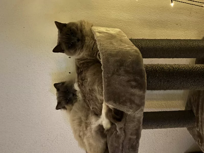 Ze zijn super lief en ze zijn twee en een half jaar oud. Ze zijn gewend om in afgesloten tuin te lopen en te liggen in het zonnetje. Dit is een voorwaarden dat ze lekker naar buiten kunnen en ze niet weg kunnen lopen. Er is een zelf reinigen de kattenbak, hangmat enz bij.