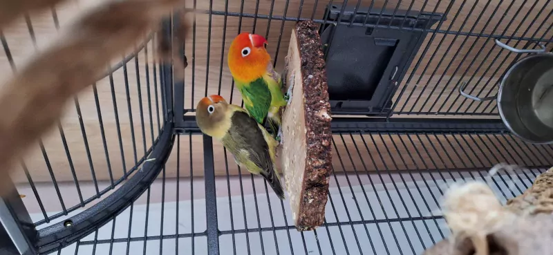 Deze 2 gezellige agapornissen zoeken een nieuw nestje. Door gezinsuitbreiding kan ik deze 2 niet de ruimte en tijd geven die ze verdienen. Ze zijn bijna 6 jaar oud en hun hele leven al samen. Thomas (lichtgroene) zijn snavel groeit sneller dan gemiddeld. Na menig onderzoek is er geen oorzaak gevonden. Zelf is dit goed bij te houden dmv afkorten.